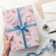 Cute Little Monkeys with bananas & leafs pink Wrapping Paper