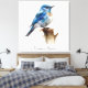 Elevate your wall decor with the rustic charm and artistic beauty of this custom canvas print. It features a beautiful watercolor illustration of a Mountain Bluebird, a symbol of happiness and hope, perched on a rustic log. The vibrant blues and subtle earth tones are printed with stunning clarity on a high-quality, gallery-wrapped canvas that adds a textural depth to the artwork. This piece is a beautiful and simple way to bring a touch of nature's serenity into any room, without the need for a frame. It's ready to hang and instantly creates a cosy, inviting atmosphere.