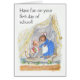 A 'Have Fun on your first day at School' greeting card, with a little mouse leaving home to set off for his first day at school. This design is from a hand-painted watercolour illustration by Judy Adamson. You can personalise the inside message.