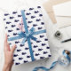 Cute Little Navy Blue Whale Pattern on White Wrapping Paper