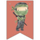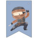 Happy Birthday bunting flag to complete your child's next ninja themed birthday party. It features cute little ninjas in a variety of positions. Make the birthday celebration a special event with this gender neutral watercolor design in pastel colours of blue, green, orange white and grey in a white background. Whatever your little ninja warrior's favourite type of martial arts may be, you can make the party memorable with this unique set of party accessories.