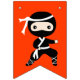 Happy Birthday bunting flag to complete your child's next ninja themed birthday party. It features cute little ninjas in between the letters of happiness birthday. Make the celebration a special event with this pink black and white design. Whatever your little ninja warrior's favourite type of martial arts may be, you can make the party memorable with this unique set of party accessories.