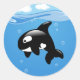 Cute Little Orca on Aqua Classic Round Sticker