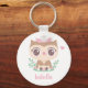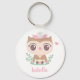 A cute little owl with a pink polka dots bow on her head is seated on flower patch. Personalise with name of kid in text template provided.