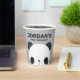 This design features cute little panda bear with personalised name in grey modern sans serif font style on light grey background.