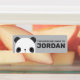 This design features cute little panda bear with personalised name in grey modern sans serif font style on light grey background.
