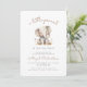 This cute baby shower invitation features a watercolor illustration of baby elephant. Above, the words "a little peanut" appear in trendy beige handwriting script. Personalise the text with the name of the mum-to-be in beige script and the details in grey sans serif font. The back of the card features a pattern of white hand-drawn stripes on a beige background. Ideal for a gender-neutral baby shower.