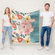 Cute Little Piglet And Cheerful Flowers Fleece Blanket