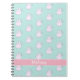 NewParkLane - Cute personalised notebook for girls, featuring colourful pattern of little pink bunnies against a pastel teal / aqua coloured background.