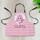 Personalised cute little pink owl wearing a hood and scarf on a wavy background apron