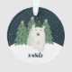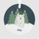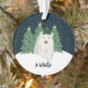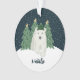 This adorable Christmas ornament features a hand drawn polar bear, wearing a hat. He's standing in front of some Christmas trees, with snow falling in the background. A text template with stylish font is included for easy personalisation on the front, and the back contains a text template for the year.