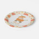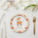 Paper plates with a cute little baby is peeping out from a pumpkin designed orange baby carriage. In the background is a pattern made using pumpkins and leaves. Best suited for baby showers in the autumn fall season! Personalise with your party message.