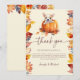 This cute baby shower thank you card features a rustic illustration of a pumpkin with cute puppy surrounded by autumn leaves and foliage. Perfect for a gender neutral baby shower for a boy or a girl during fall and the Thanksgiving season.