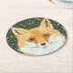 Cute Little Red Fox - in the snow. Round Paper Coaster