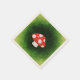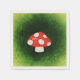 A cute illustration of a spotted red mushroom. Background is green weathered grunge with a bit of canvas texture.