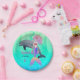 Cute Little Sea Mermaid Girl with Dolphin Birthday Paper Plate