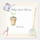 "A little sprout is on the way". Celebrate with this sprout themed baby shower party! Watercolor sprout in a pot, a rake, a watering can and pruning shears (scissors).