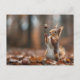Cute little squirrel trying to catch an acorn modair in the lush autumn forest.
