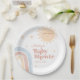 Set the stage for a memorable baby shower with our customisable paper plates! Elevate your party decor with these charming plates, featuring retro fonts and warm neutral colours that bring a touch of nostalgia to your celebration. Personalise them with the mum-to-be's name and the date of the event for an extra-special touch. Gender-neutral and modern in design, they exude joy and anticipation, perfect for welcoming the newest member of the family. Adorned with a watercolor smiling sun and an artistic rainbow, these plates promise to add whimsical charm to your festivities. Let's make the baby shower a truly unforgettable occasion with these stylish and personalised paper plates! Part of the 'Here Comes the Son' baby shower collection.