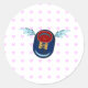 Cute little winged shoe cartoon and pink hearts classic round sticker