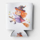 Cute little witch flying on a broomstick can cooler