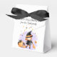 Cute Little Witch Halloween Favour Box with cutest watercolor girl witch, pumpkins and a black cat in purple, orange and black.
