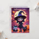 Cute little witch with cats and pumpkins, custom invitation