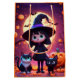 Cute little witch with cats and pumpkins Designed by Marion Bönner