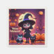 Cute little witch with cats and pumpkins, custom napkin