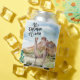 Cute Llama with a pink flower on his ears in the desert with cactuses, a mountain, and grass around. A blue watercolor sky is above the Llama and there is the funny description "No Drama Llama"