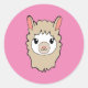 Cute Llama Face Drawing Pink Classic Round Sticker