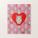 Cute Llama Head And Red Hearts Pink Background Jigsaw Puzzle