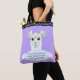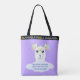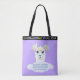 Cute llama on lavender blue Tote Bag. Beautiful llama with colourful ribbons above the clouds...high on the sky. Llama name has several meanings: It means Calling, lama, wisdom, flame (sacred one also), etc and backwards it is... Am All. High on the mountains, where there are llamas there are no dramas! Ladies handbag, beach bag, grocery bag, fashion tote bag.