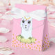 Cute llama decorated with peonias and gold confetti on pink Thank you favour box. Beautiful favour box for all kind of parties and events. Text Thank You can be personalised.