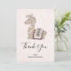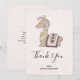 Flat thank you card with a drawing of a cute little llama wearing a crown and a Peruvian blanket.