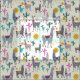This cute print has dressed up llamas and cactus and Suns in a multi colour pattern.The graphic art is fun and will add whimsy to any project!