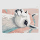 This is a digital illustration of a llama’s head on a pink background. The llama has a white fur and a blue and pink headdress, giving it a festive and adorable look. The illustration is in a flat design style with minimalism, creating a modern and simple aesthetic.