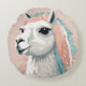 Cute Llama with Colourful Fur on its Head Round Cushion