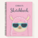 Cute Llama With Glasses Personalised Kids Notebook