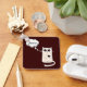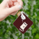 Square metal keychain with adorable sad kitty holding a heart with thought bubble to personalise with a name.