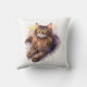 Cute Long Haired Tabby Cat Watercolor Illustration Cushion