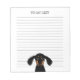 Dachshund Lover's Notes. Funny longhaired black and tan Doxie puppy. Text can be personalised with your name or slogan. Cute lined paper notepad for work, to-do lists, school, and grocery lists. Makes a fun gift for a friend for family member who loves wiener dogs. Available in more paper colours.