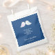 This wedding favour bag features a pair of cute love birds facing each other. Customisable text allows you to add a personal thank you message or leave as it reads: "Thank you for sharing our special day with us." Customisable text, near the bottom allows for the names of the bride and groom and their wedding date. The background colour is navy blue.