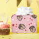 Cute illustration of a black and brown dog wearing heart sunglasses and headband surrounded by hearts.