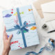 A pair of adorable, colourful fish swimming gracefully in the vast and sparkling ocean. The two fish are beautifully adorned with a vibrant palette of colours that mirror the brilliance of a coral reef. This romantic illustration represents love and happiness in the ocean depths. Enjoy the bliss with this cute personalised wrapping paper. You can customise the wrapping paper with your greeting and name. Great for Valentine's day gift.