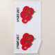 Cute Love Grows Red Tomatoes Beach Towel. This original and simple design was created with circles; lines; shades of black, green, and red; and various font text items (parentheses, periods, and asterisks).