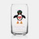 This awesome can glass features a cute cartoon of a penguin with big eyes, a small beak and cute little feet. The penguin has a big red love heart in the middle of its belly and wings wide open ready to give someone a big hug. There is custom text so you can include the names of the Bride and Groom and the date of the Wedding.