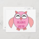 This cute postcard features a cute cartoon of a pink owl with sleepy eyes, a small beak and cute little feet. There is bright pink text inside the owls tummy that says, “Owl Always Love you”. This is the perfect gift for showing someone special how much you love them.