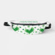 Cute green lucky clover St Patrick's Day fanny pack bag for the waist. Custom belt bag for your hip. Custom colour background. Personalise with name or funny quote like Kiss i'm Irish. Handy for travel, work, sports and more. Upload your own logo or symbol optionally. Fun St Pat's accessory for friends and family.