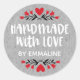 A personalised "made with love" sticker on a grey paper textured background. Make it yours by adding your own name. Fun for Valentine's Day, or any occasion. Makes a pretty finishing touch for all of your handmade gifts. Designed for you by Blackberry Boulevard.